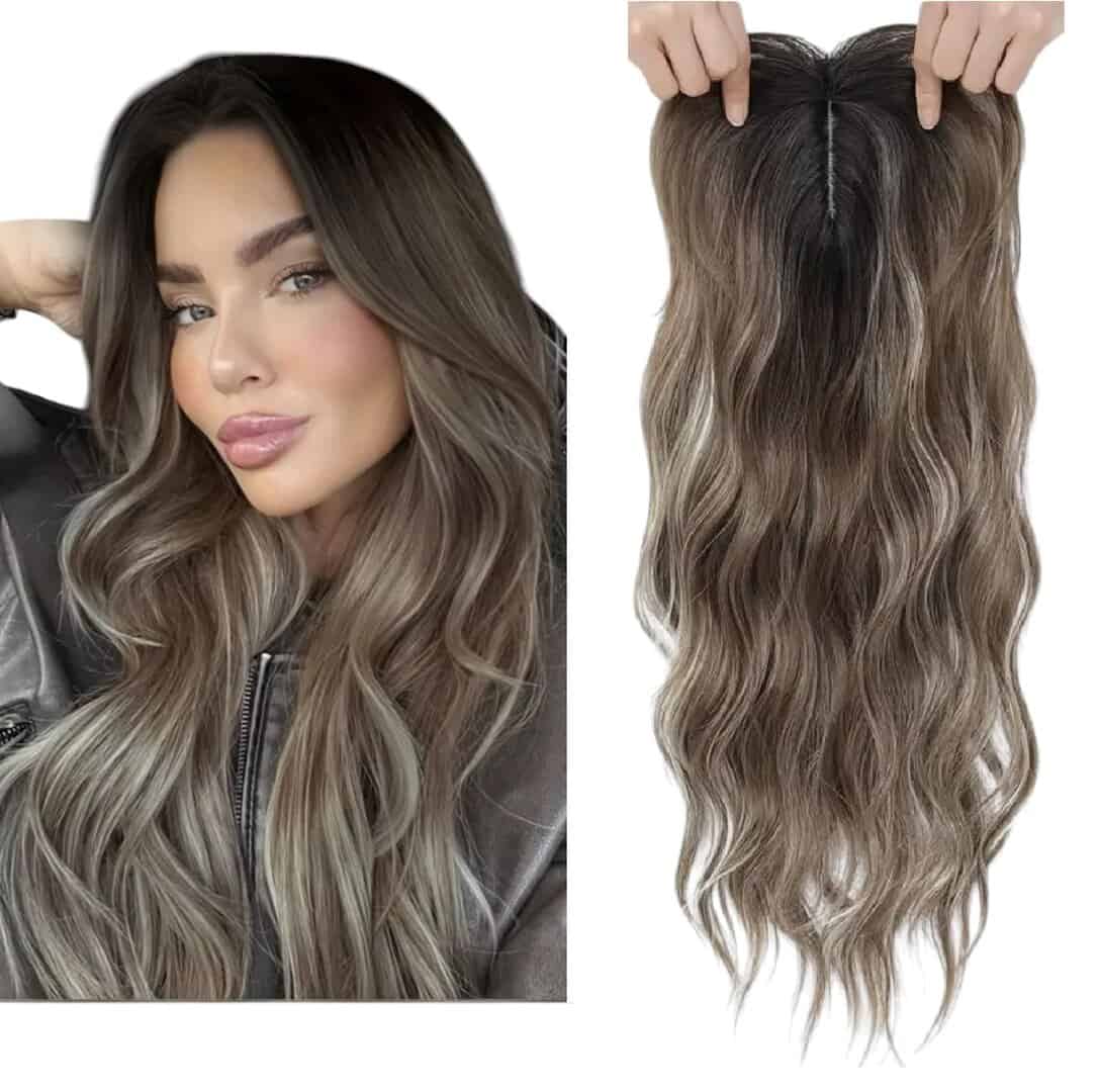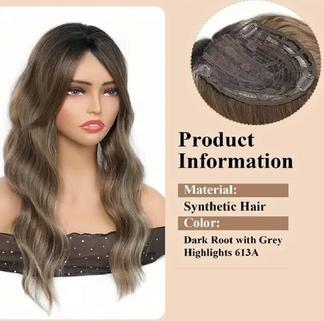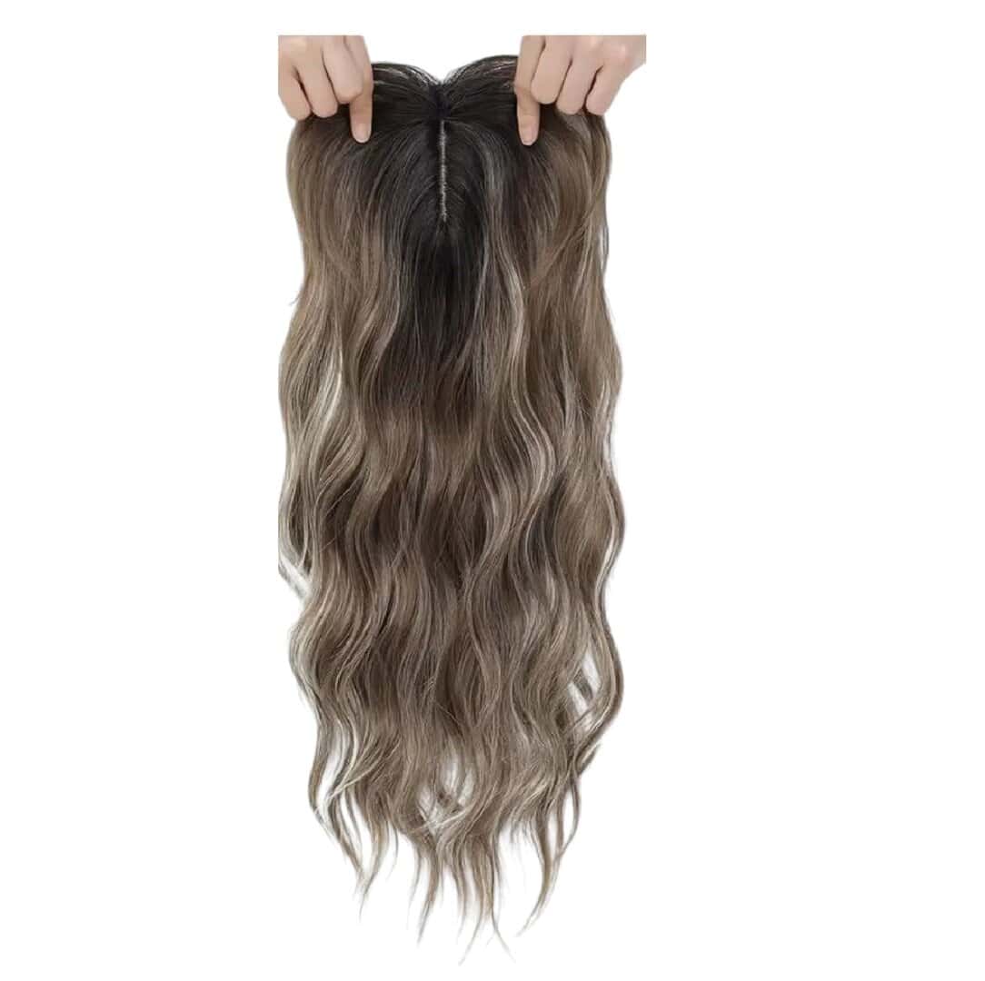 Γυναικείο Topper Τουπέ κορυφής μαλλιών με κλιπ μεγάλης επιφάνειας – Brown/grey Ανταύγειες 18 inches