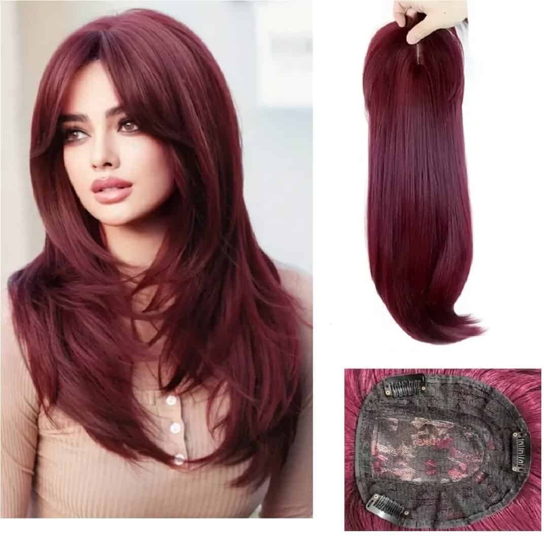 Γυναικείο Topper Τουπέ κορυφής μαλλιών με κλιπ μεγάλης επιφάνειας – Dark Red Κόκκινο 22 inches