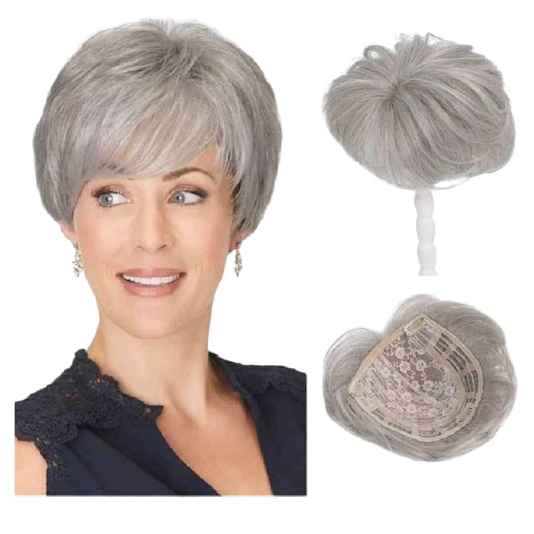 Γυναικείο Topper Τουπέ κορυφής μαλλιών με κλιπ μεγάλης επιφάνειας – Grey -Γκρι 6 inches