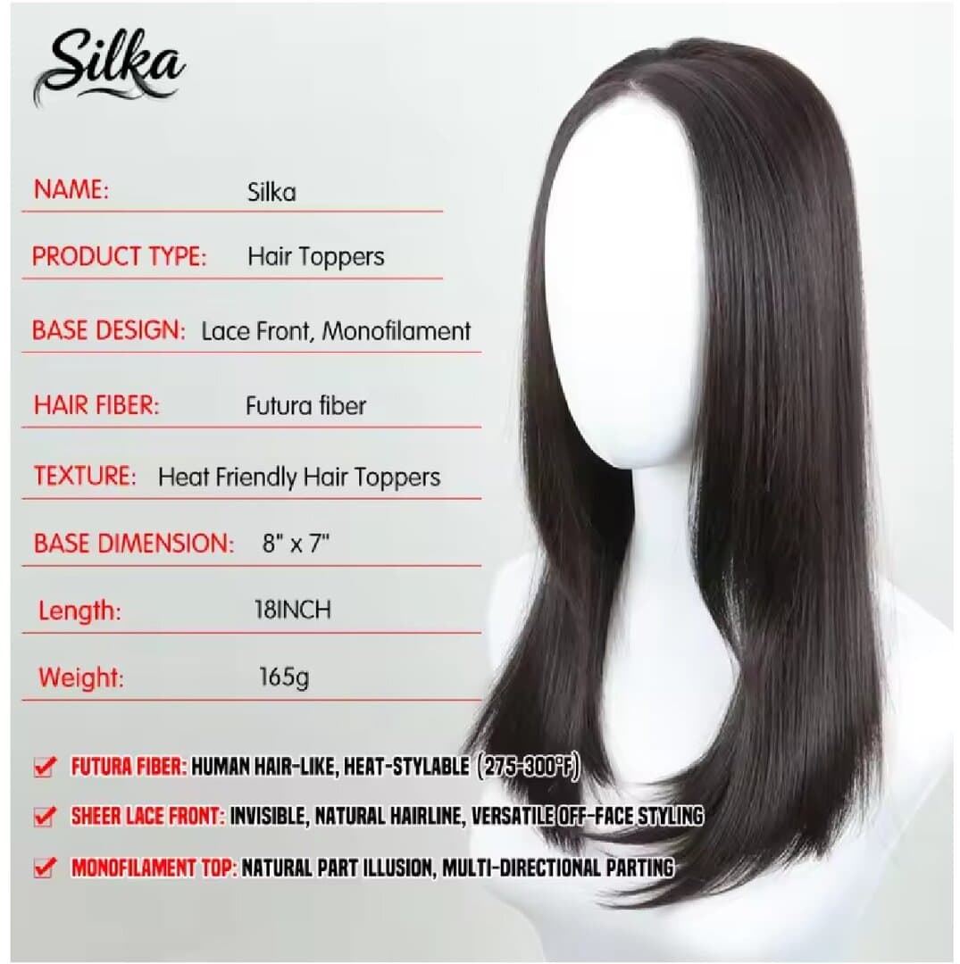 Γυναικείο Topper Τουπέ κορυφής μαλλιών με κλιπ μεγάλης επιφάνειας και διάφανη χωρίστρα 18 inches συνθετική τρίχα Kanekalon- Καστανό σκούρο χρώμα