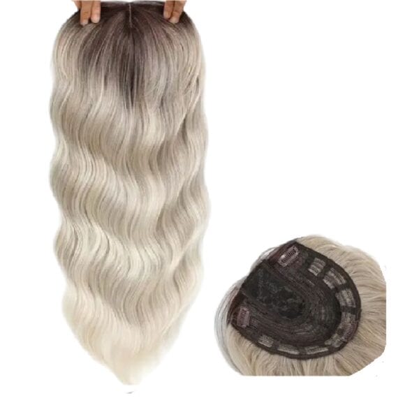 Γυναικείο Topper Τουπέ κορυφής μαλλιών με κλιπ μεγάλης επιφάνειας και Lace Front (ραμμένο σε διαφάνεια) – Ξανθό Σαντρέ ashy blonde wavy 18 inches