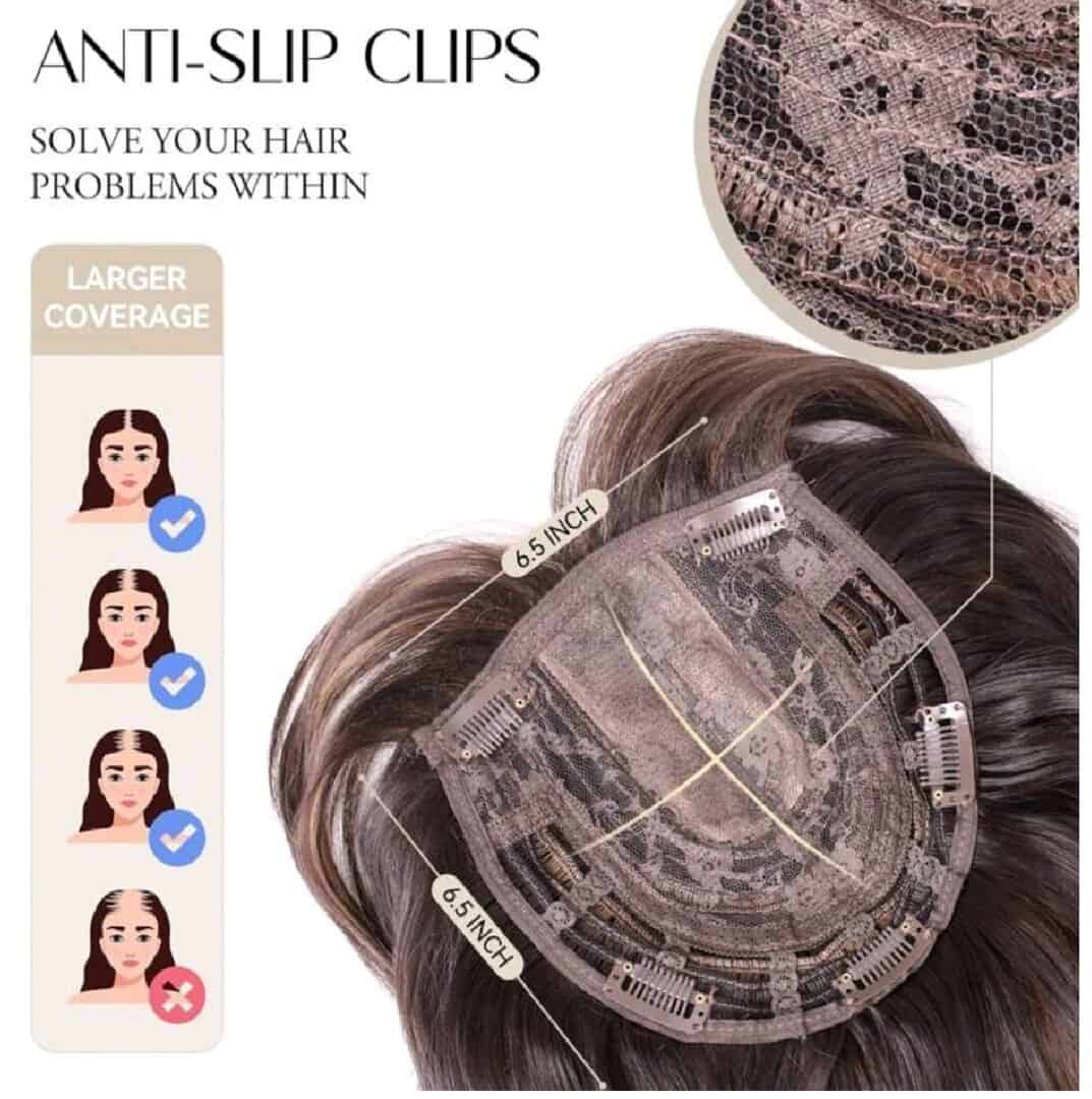 Γυναικείο Topper Τουπέ κορυφής μαλλιών με κλιπ μεγάλης επιφάνειας – Καστανό Brown 22 inches