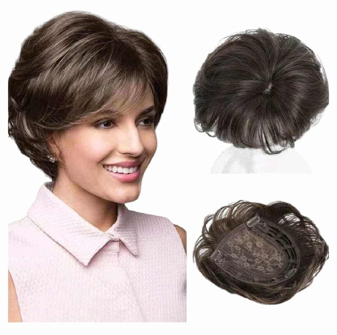 Γυναικείο Topper Τουπέ κορυφής μαλλιών με κλιπ μεγάλης επιφάνειας – Καστανό σκούρο 6 inches