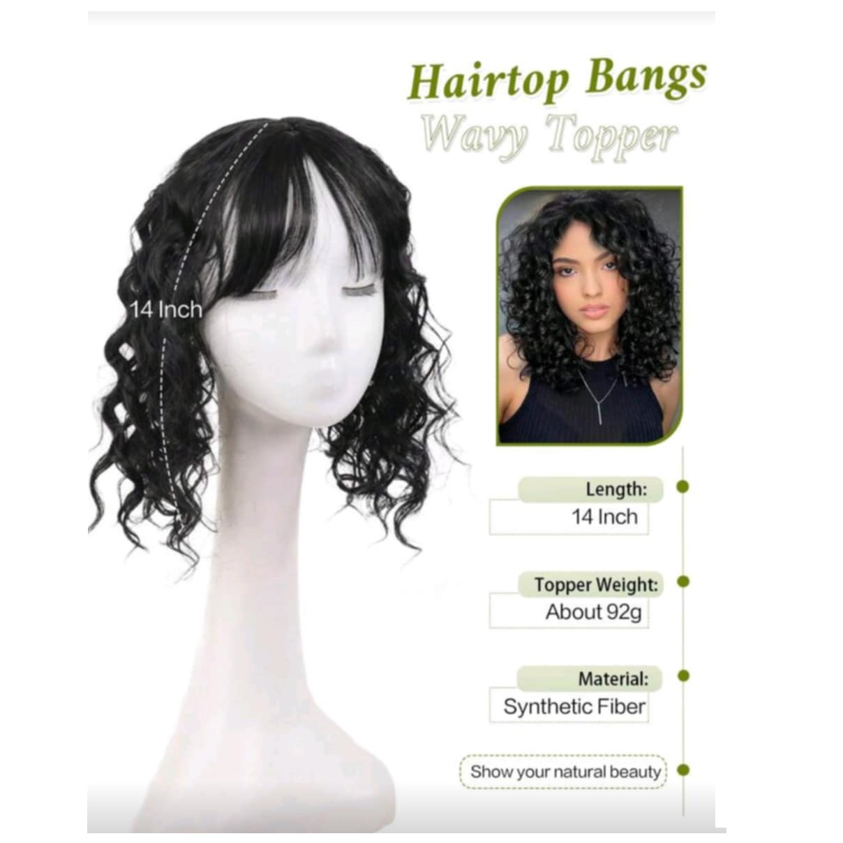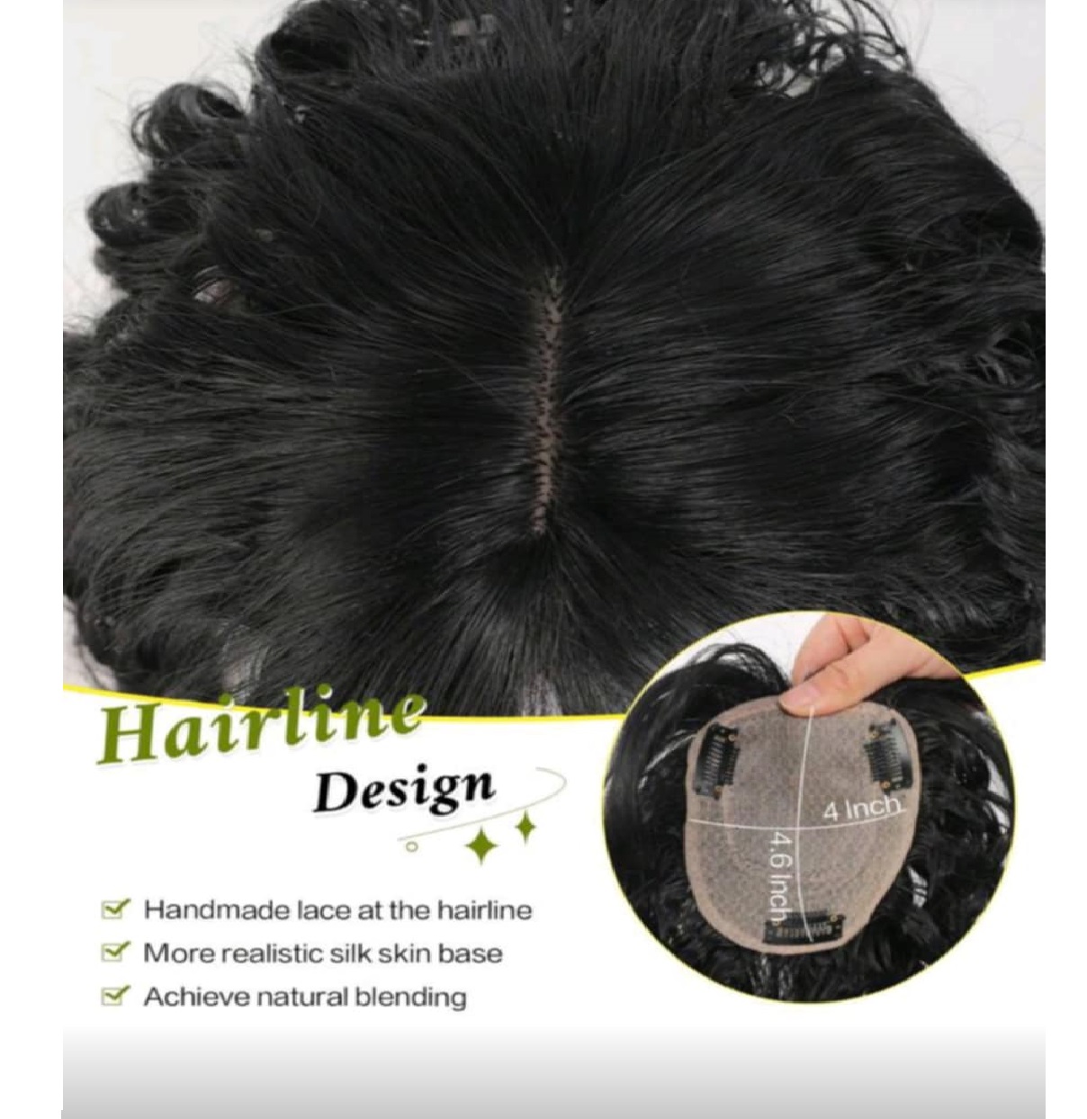 Γυναικείο Topper Τουπέ κορυφής μαλλιών με κλιπ μεγάλης επιφάνειας – Μαύρο black με μπούκλες 14 inches