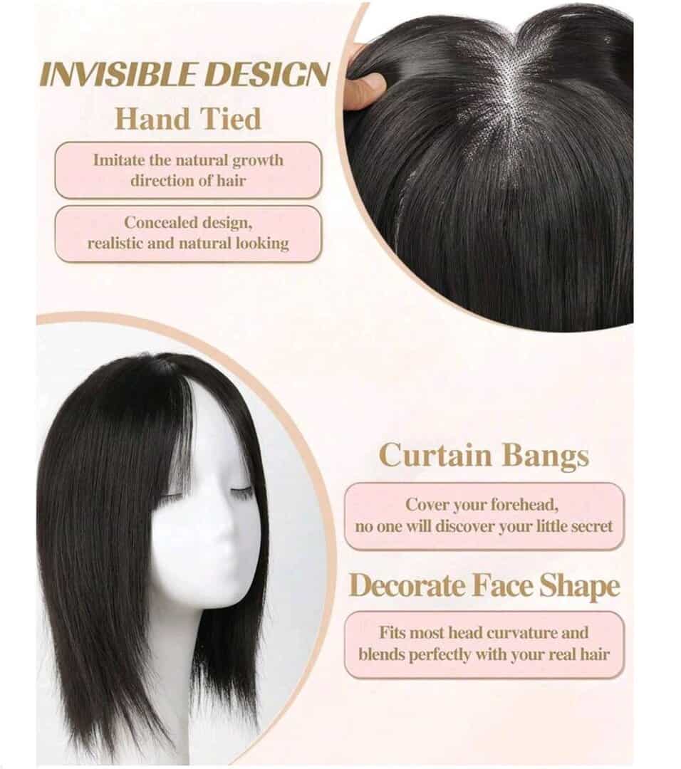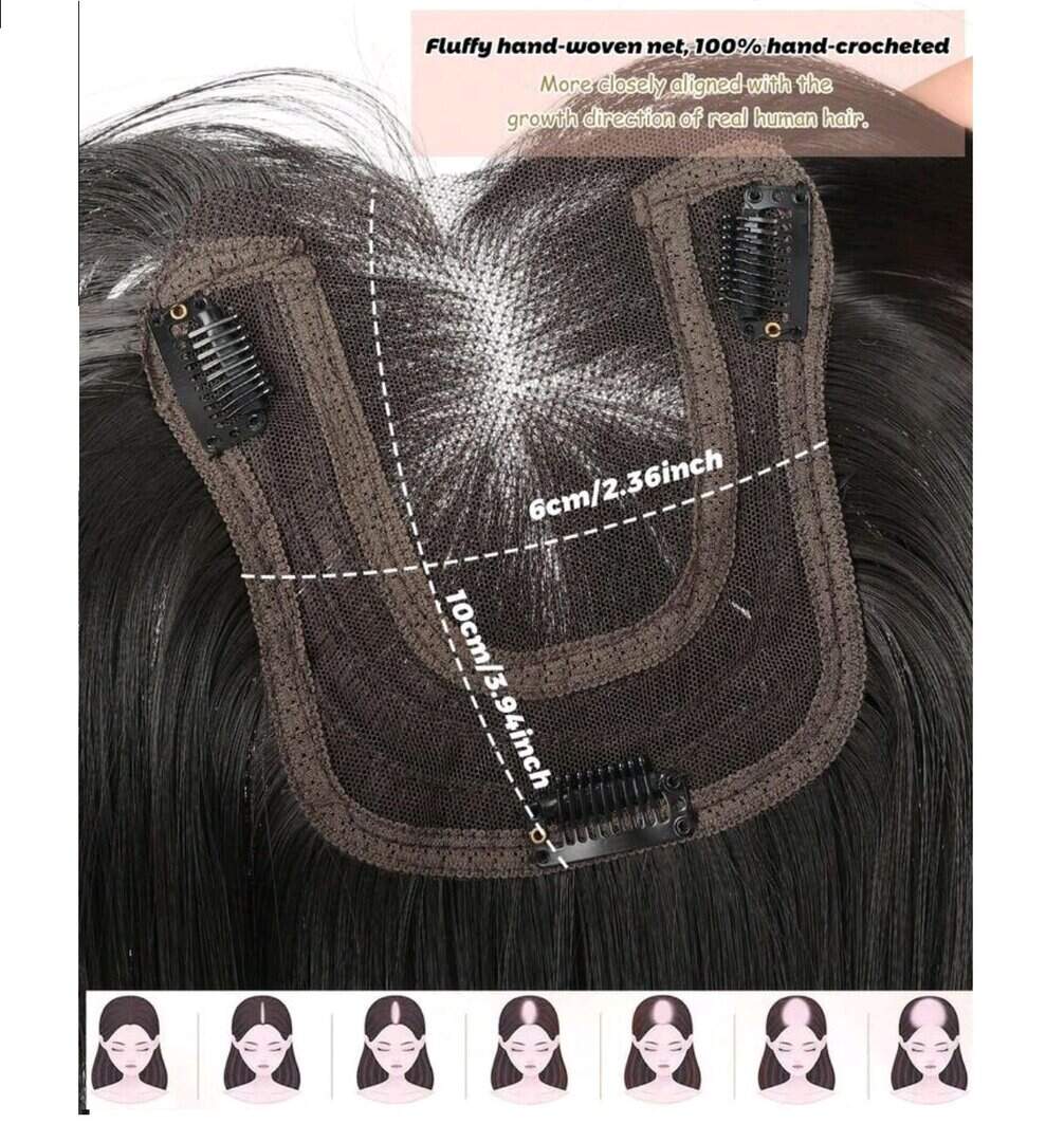 Γυναικείο Topper Τουπέ κορυφής μαλλιών με κλιπ μεγάλης επιφάνειας με διάφανη χωρίστρα – Μαύρο χρώμα 30cm