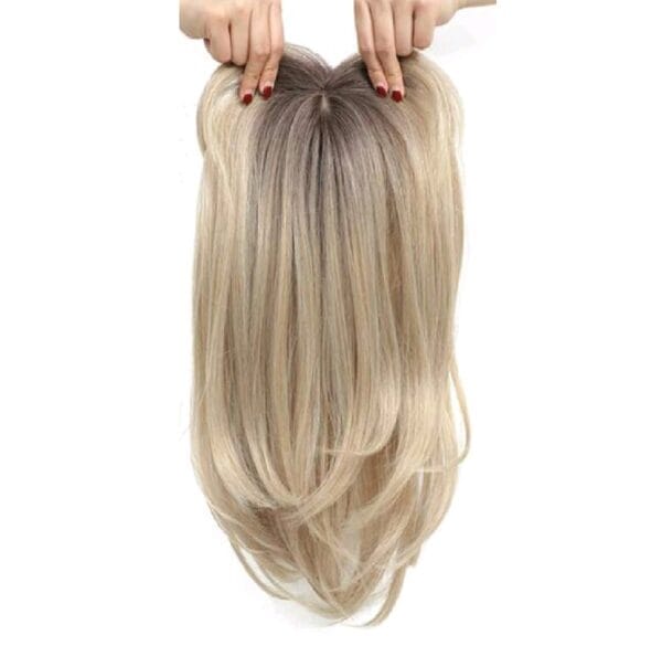 Γυναικείο Topper Τουπέ κορυφής μαλλιών με κλιπ μεγάλης επιφάνειας με Lace Front (διαφάνεια )- Ξανθό με σκούρη ρίζα 19 inches