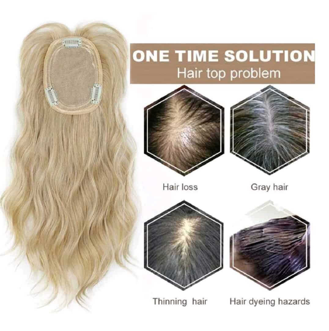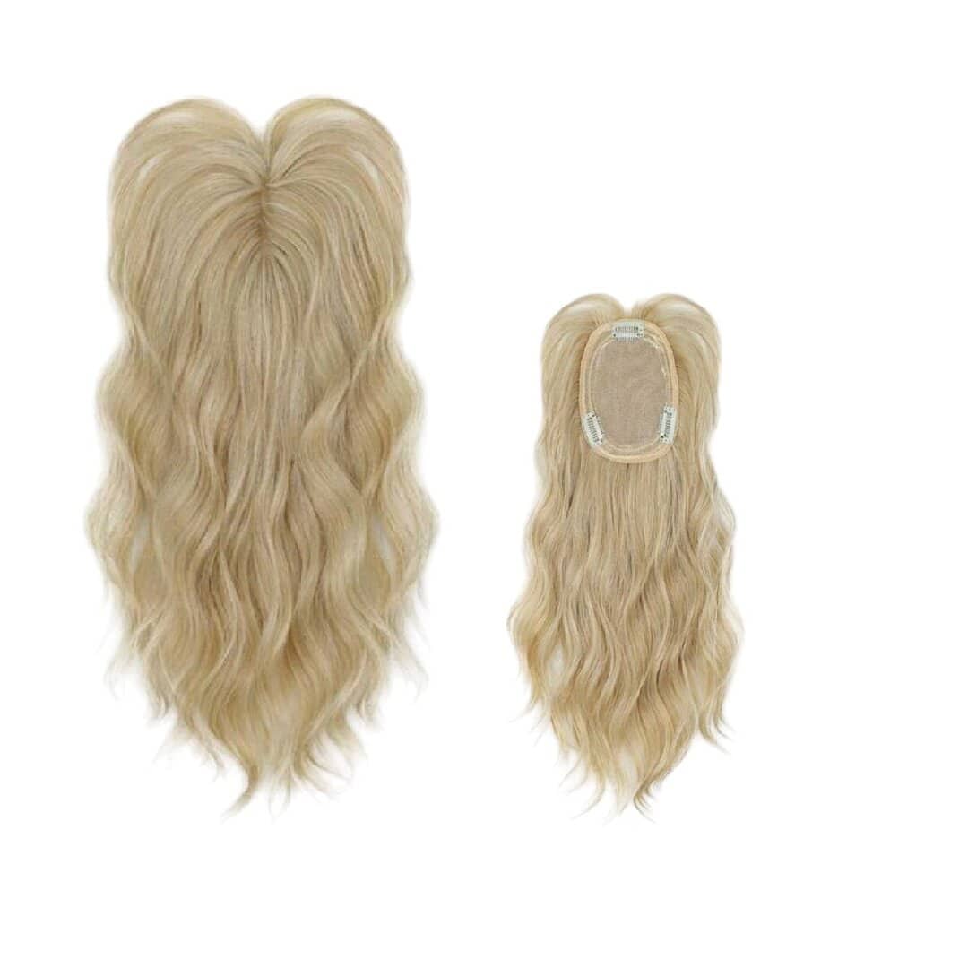 Γυναικείο Topper Τουπέ κορυφής μαλλιών με κλιπ μεγάλης επιφάνειας – Ξανθό ανοιχτό 14 inches