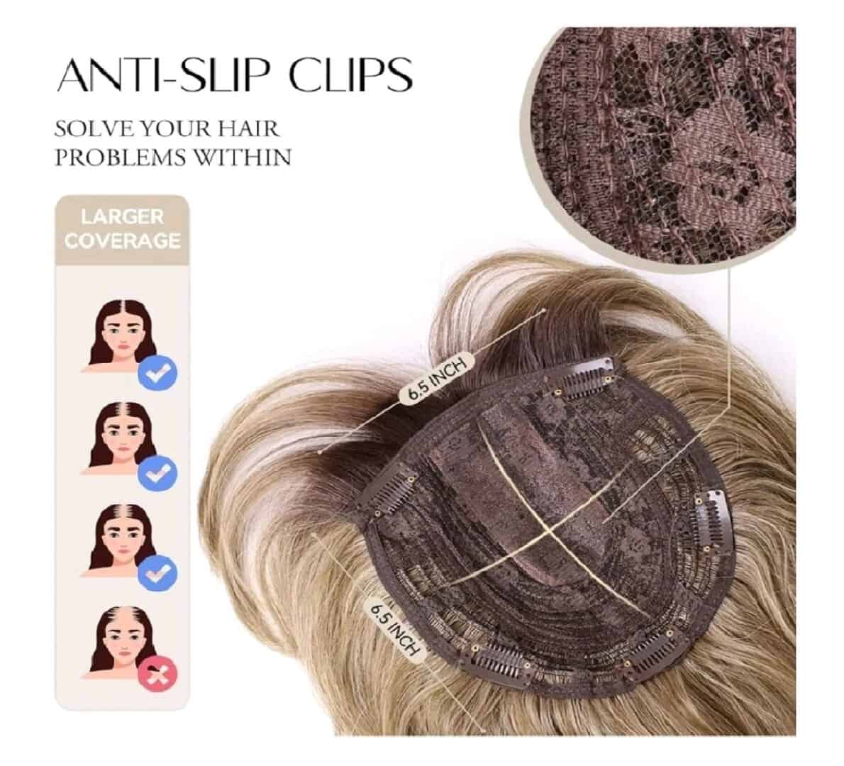 Γυναικείο Topper Τουπέ κορυφής μαλλιών με κλιπ μεγάλης επιφάνειας – Ξανθό σκούρο με σκούρη ρίζα 22 inches