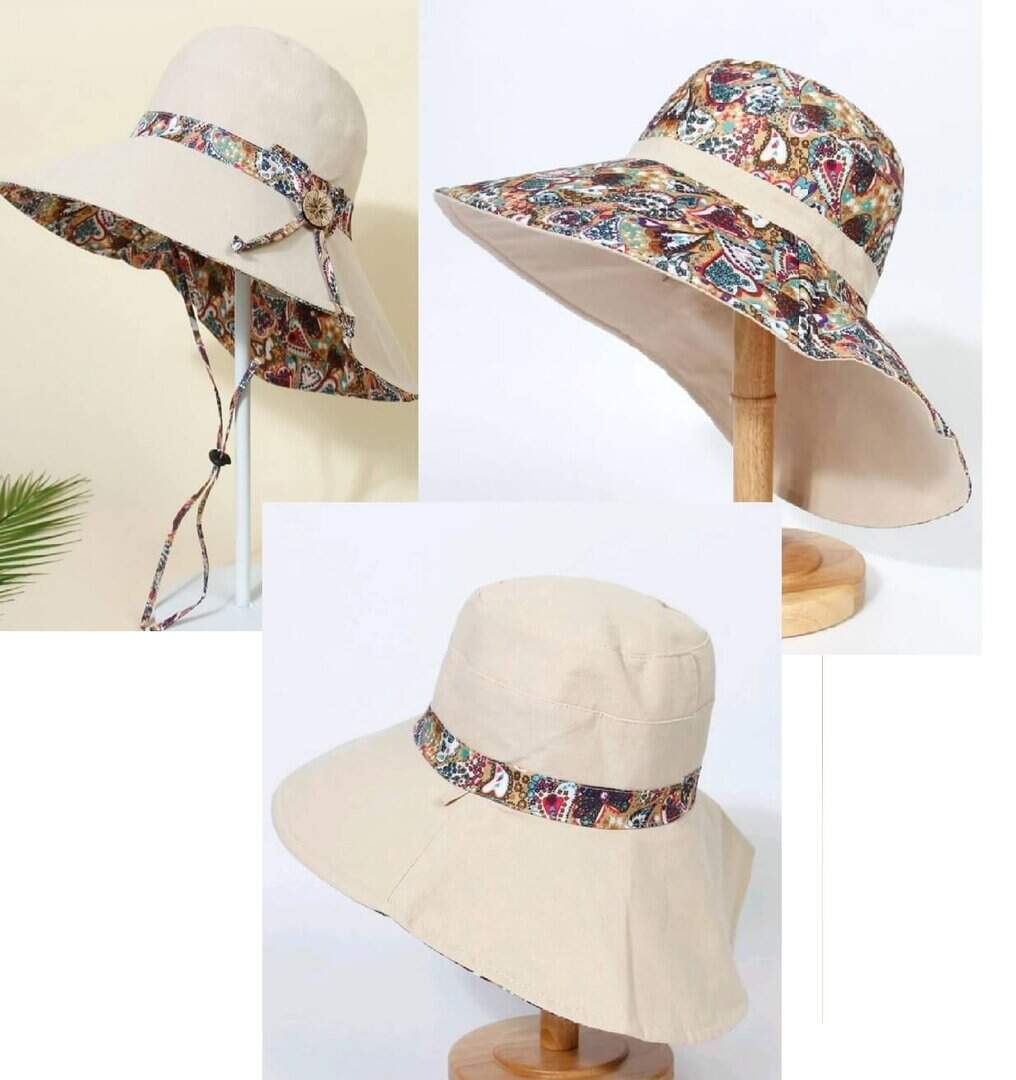 Γυναικείο Υφασμάτινο Καπέλο με μάκρος διπλής όψης- Beige
