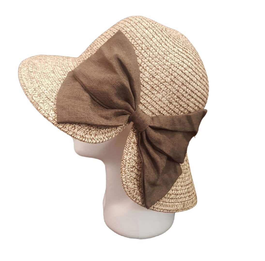 Γυναικείο Υφασμάτινο Καπέλο με μάκρος και μεγάλο φιόγκο- Beige