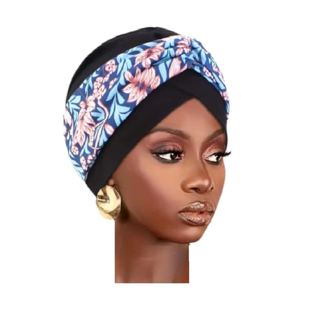 Γυναικείο Υφασμάτινο Μαλακό Τουρμπάνι μαλλιών Flowers blue beauty ( μαύρο)