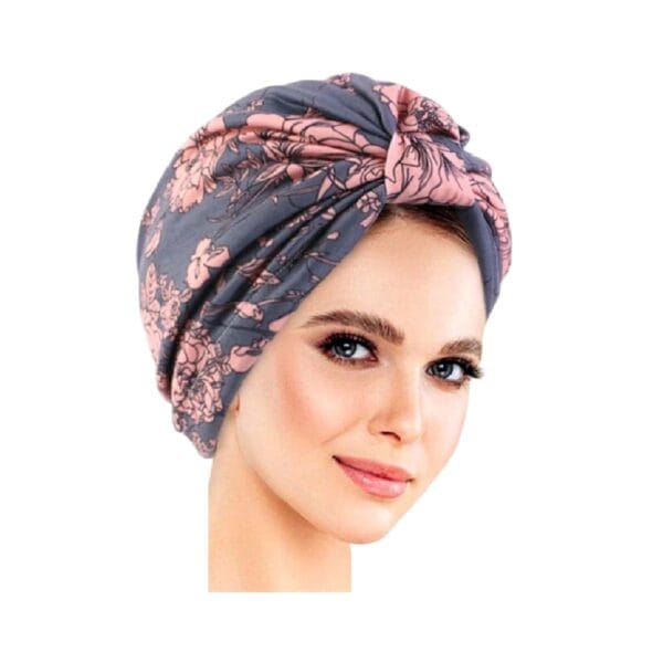 Γυναικείο Υφασμάτινο Μαλακό Τουρμπάνι μαλλιών Grey Flowers