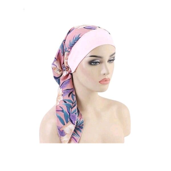 Γυναικείο Υφασμάτινο Μαλακό Τουρμπάνι μαλλιών Pink Somon Flowers long