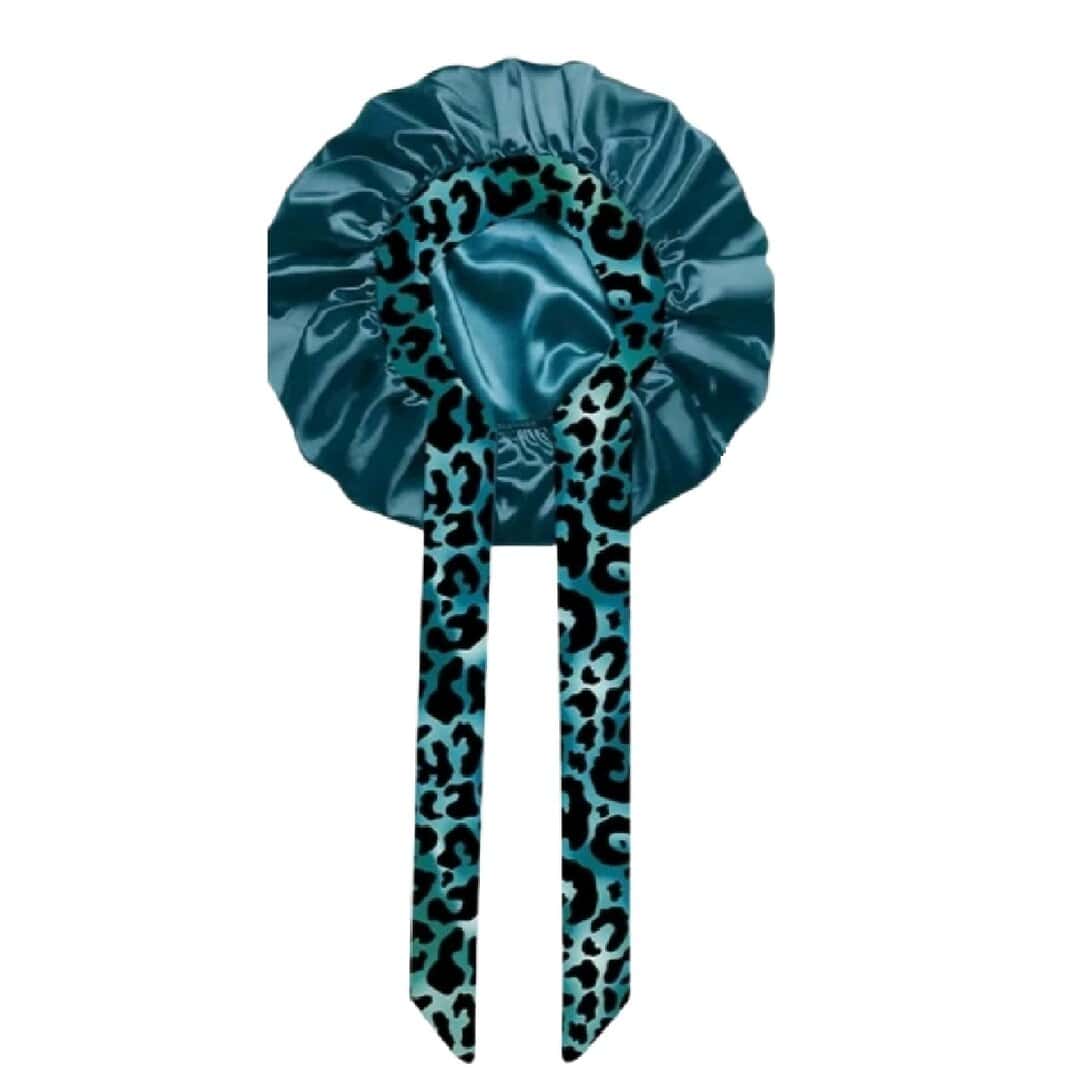 Γυναικείο Υφασμάτινο Μαλακό Τουρμπάνι μαλλιών Ύπνου Bonnet Leopard Green