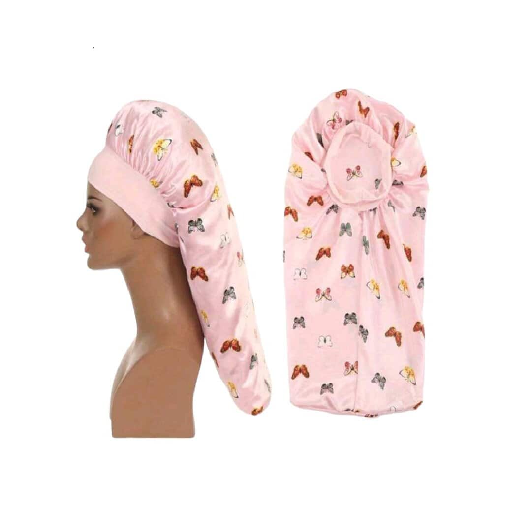 Γυναικείο Υφασμάτινο Μαλακό Τουρμπάνι μαλλιών Ύπνου Bonnet Pink Butterflies Long