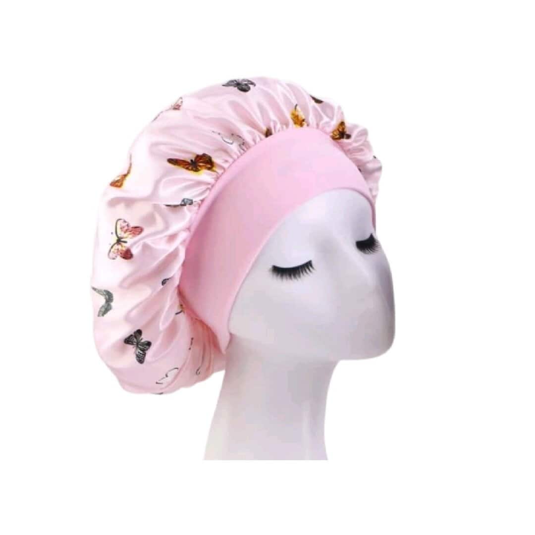 Γυναικείο Υφασμάτινο Μαλακό Τουρμπάνι μαλλιών Ύπνου Bonnet Pink Butterflies