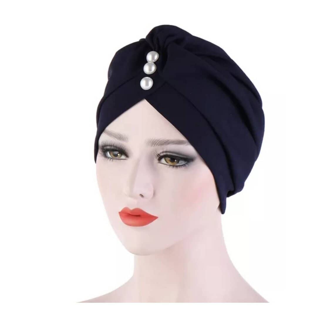Γυναικείο Υφασμάτινο Μαλακό Τουρμπάνι μαλλιών Dark Navy Pearls
