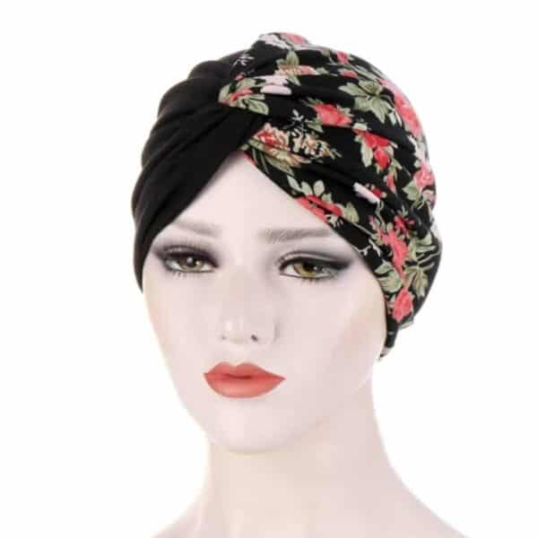 Γυναικείο Μαλακό Τουρμπάνι μαλλιών – Black flower (Μαύρο)