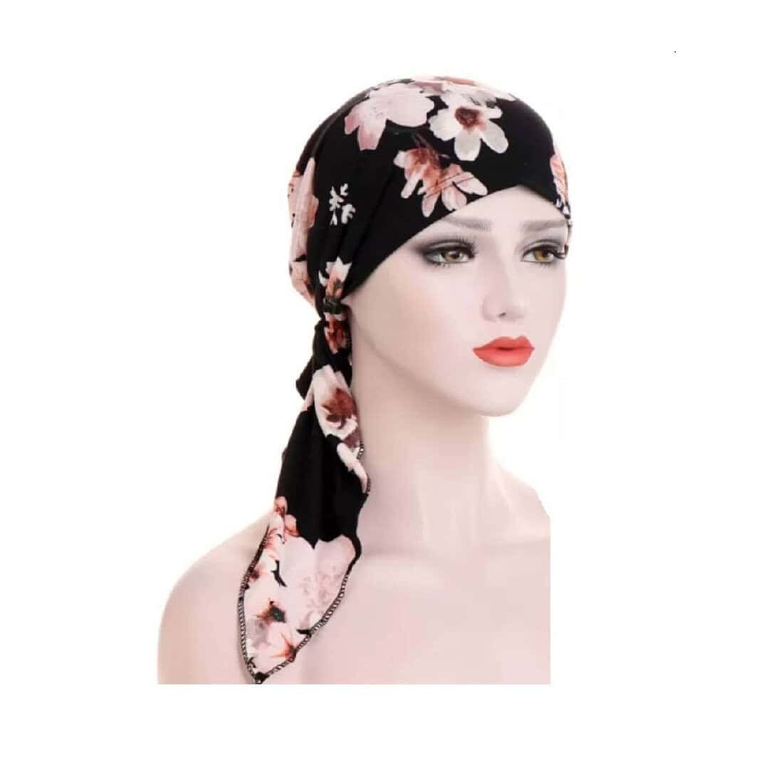 Γυναικείο Μαλακό Τουρμπάνι μαλλιών – Black flowers long (Μαύρο)