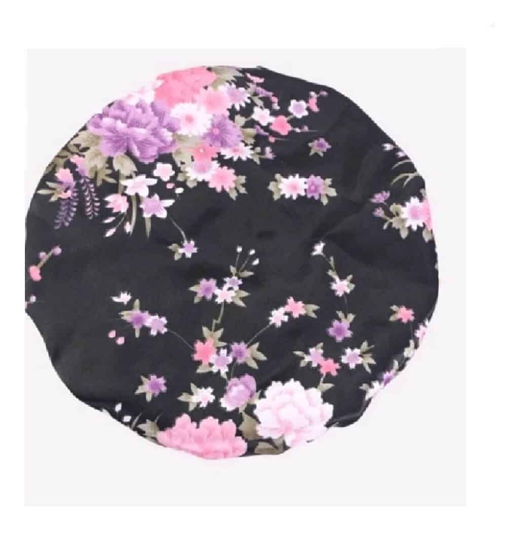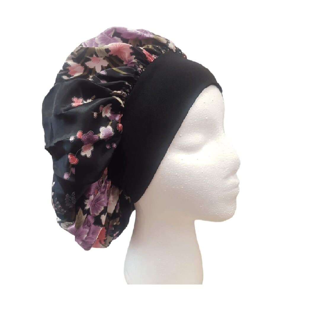 Γυναικείο Μαλακό Τουρμπάνι ύπνου Bonnet μαλλιών – Black flowers (Μαύρο)