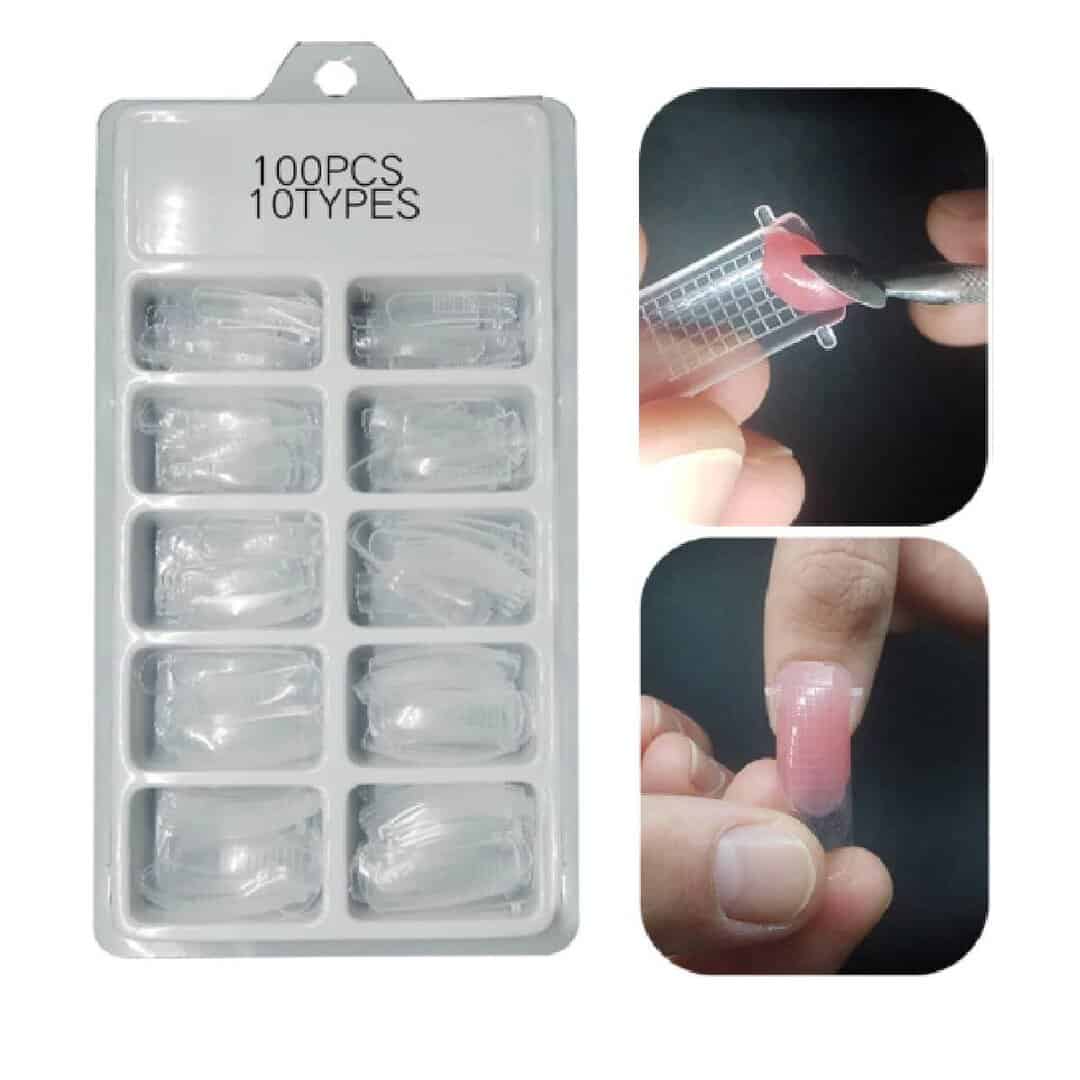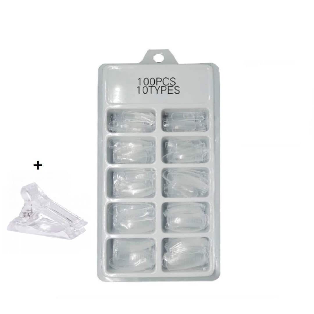 Κασετίνα με ψεύτικα νύχια dual Forms 100 τμχ Διάφανα Τετράγωνα+ μανταλάκι στήριξης