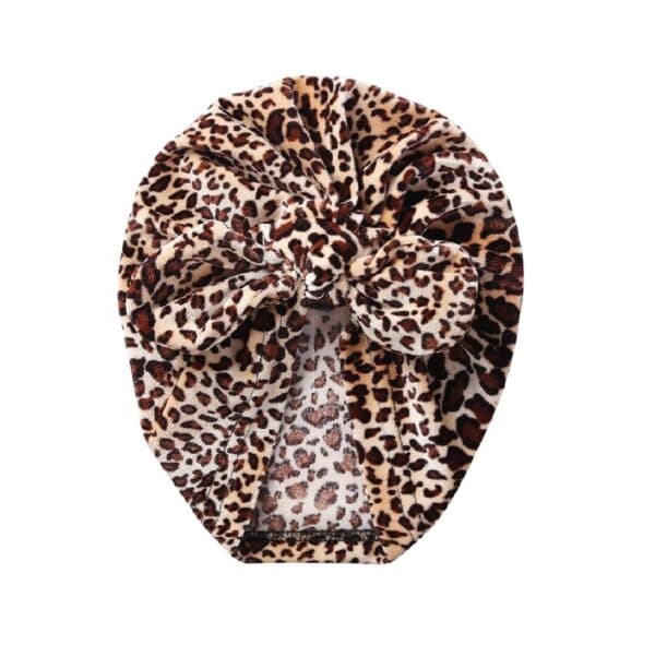 Παιδικό- Βρεφικό Μαλακό-ελαστικό βελούδινο Τουρμπάνι leopard animal Print με φιόγκο 0-1 χρονών