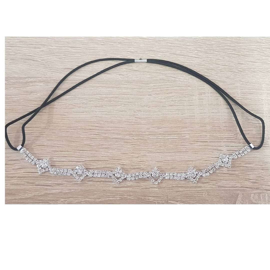 Νυφική αλυσίδα με κρύσταλλα σε ασημί χρώμα τύπου κορδέλα 02 – 22cm