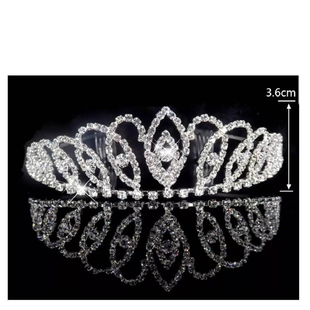 Νυφική Κορώνα- Τιάρα με κρύσταλλα ασημί ύψους 3,60cm με χτενάκι στήριξης 02