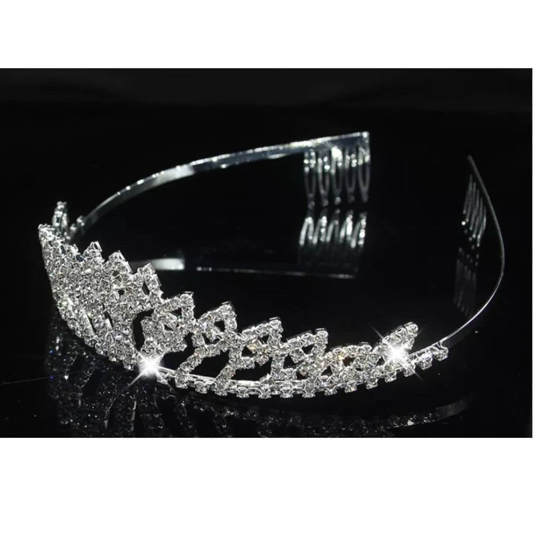 Νυφική Κορώνα- Τιάρα με κρύσταλλα ασημί ύψους 3,60cm με χτενάκι στήριξης