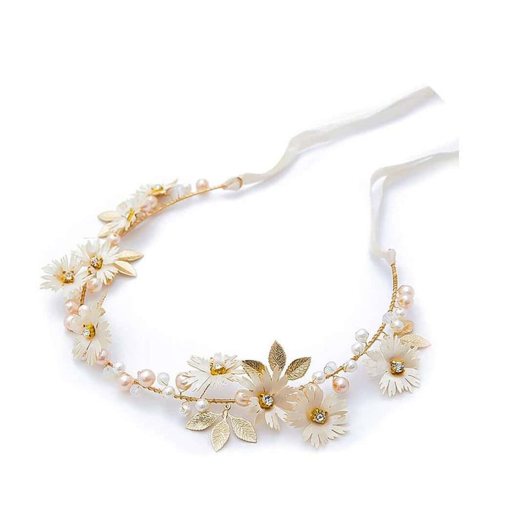 Νυφική Κορώνα- Στεφάνι με πέρλες, στρας και λουλουδάκια σε χρυσό χρώμα