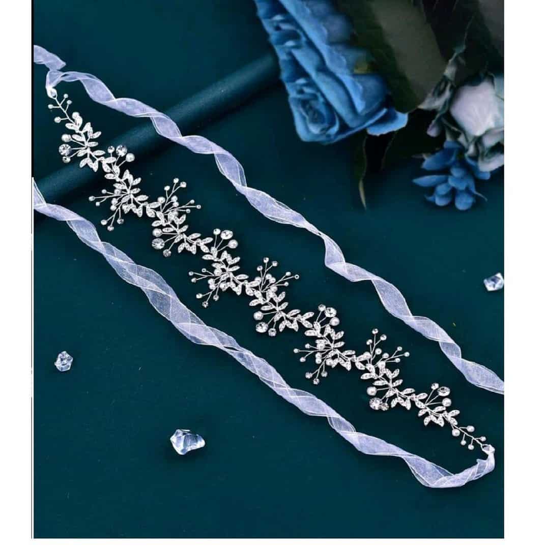 Νυφικό αξεσουάρ μαλλιών με κρύσταλλα σε ασημί χρώμα 32cm