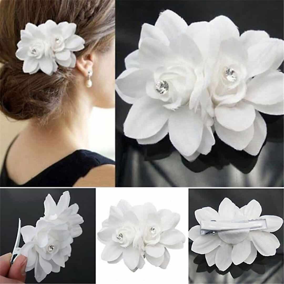 Νυφικό Χτενάκι- Κλιπ σε σχήμα λευκών λουλουδιών και στρας