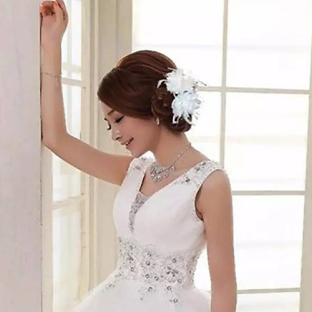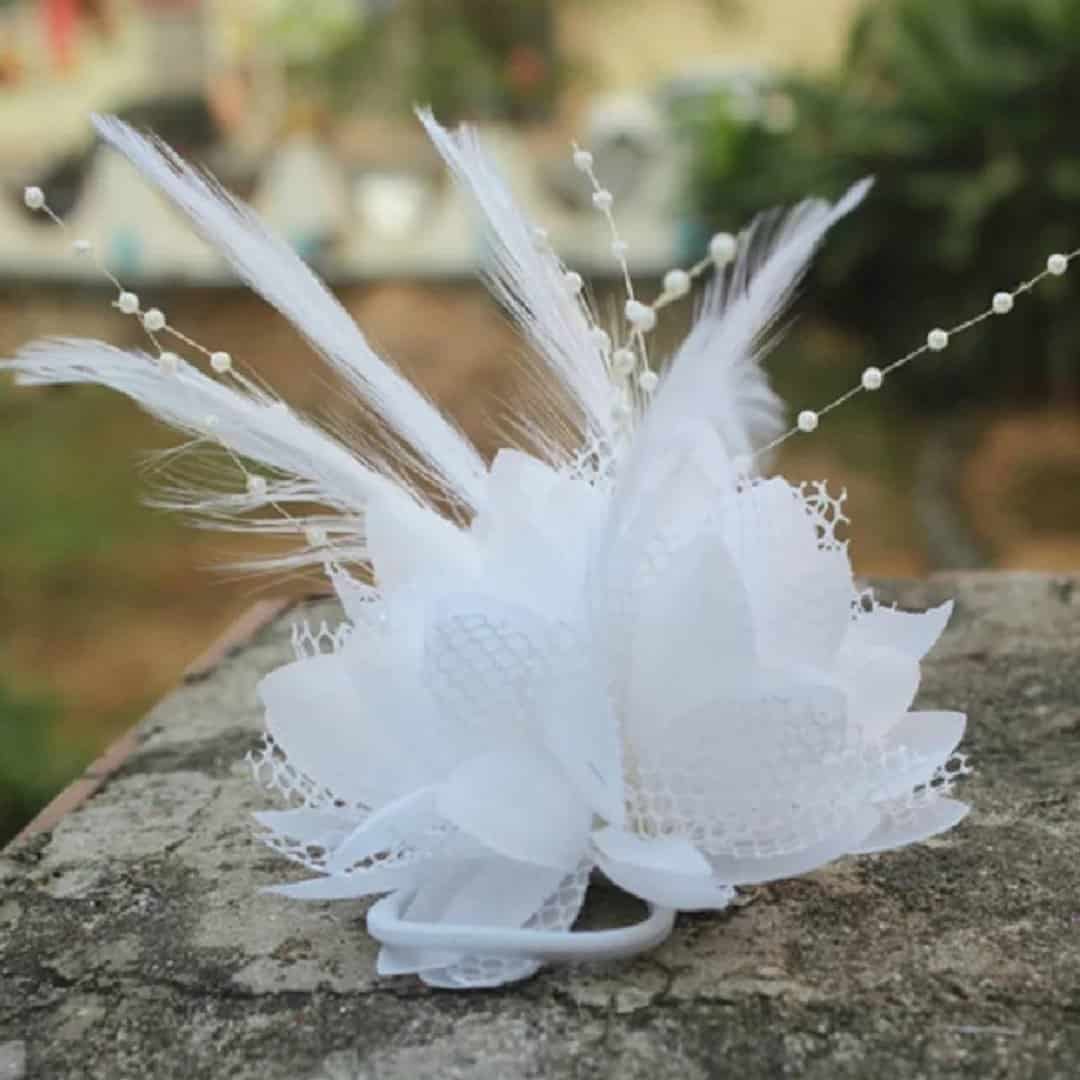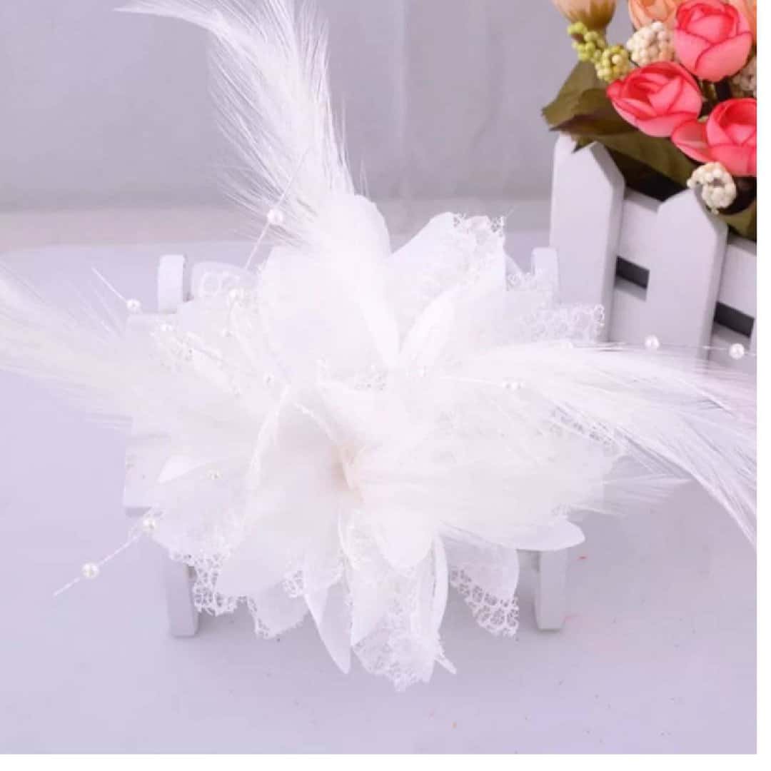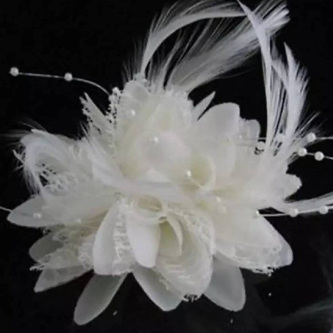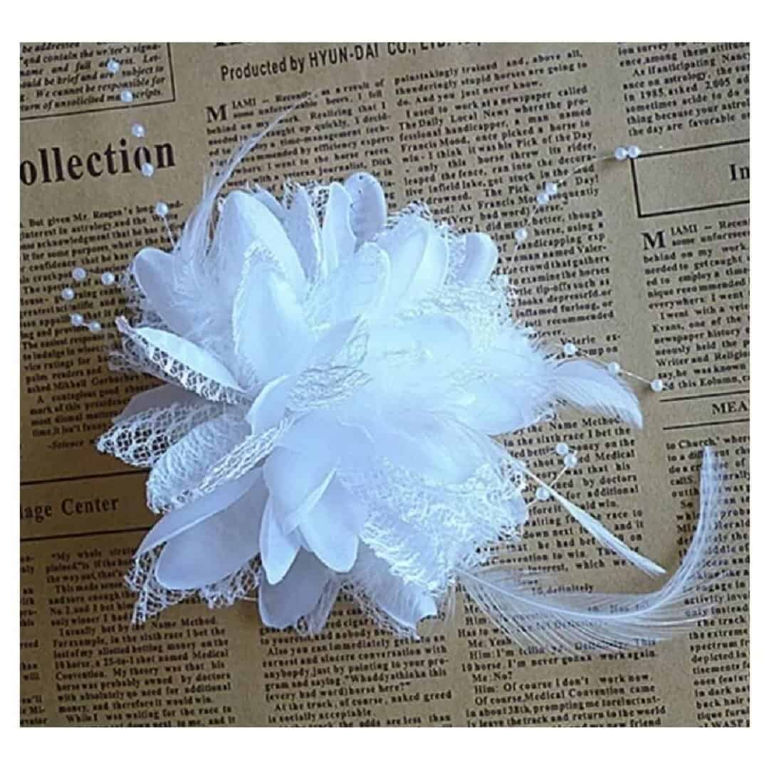 Νυφικό Κλιπ λευκό λουλούδι με δαντέλα και πέρλες