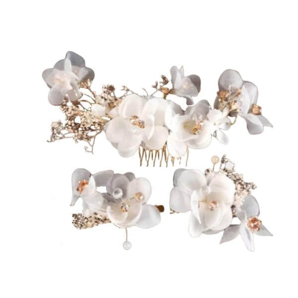 Νυφικό Σετ χτενάκι λουλουδιών σε χρυσό χρώμα 25cm