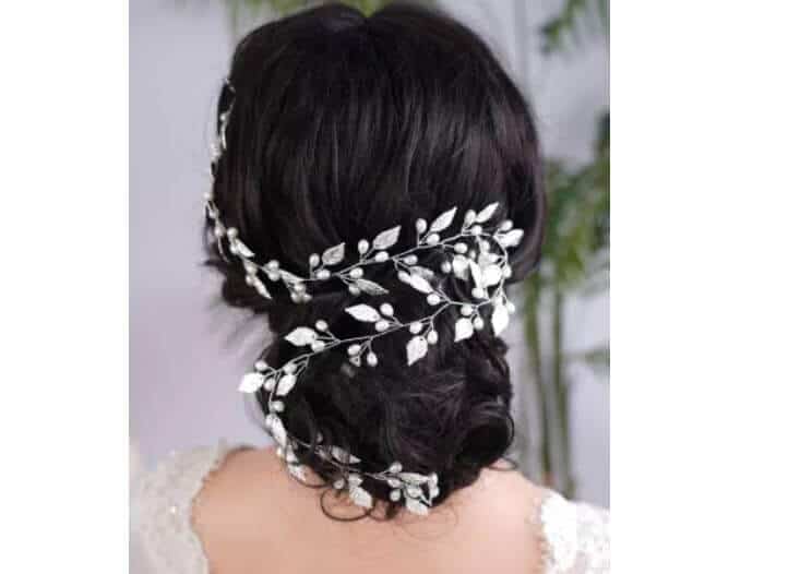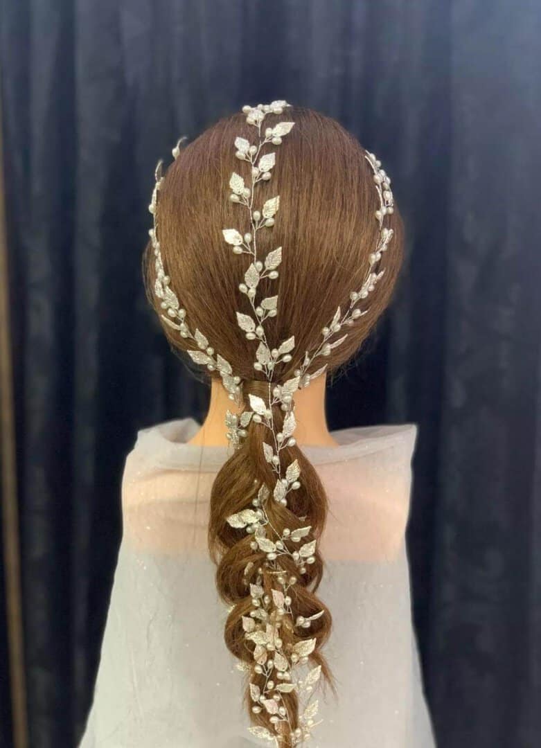 Νυφικό ” σύρμα ” με φύλλα και πέρλες αρχαιοελληνικό design σε ασημί χρώμα 60cm