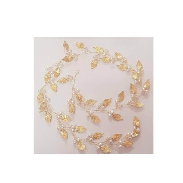 Νυφικό ” σύρμα ” με φύλλα και πέρλες αρχαιοελληνικό design σεχρυσό χρώμα 60cm