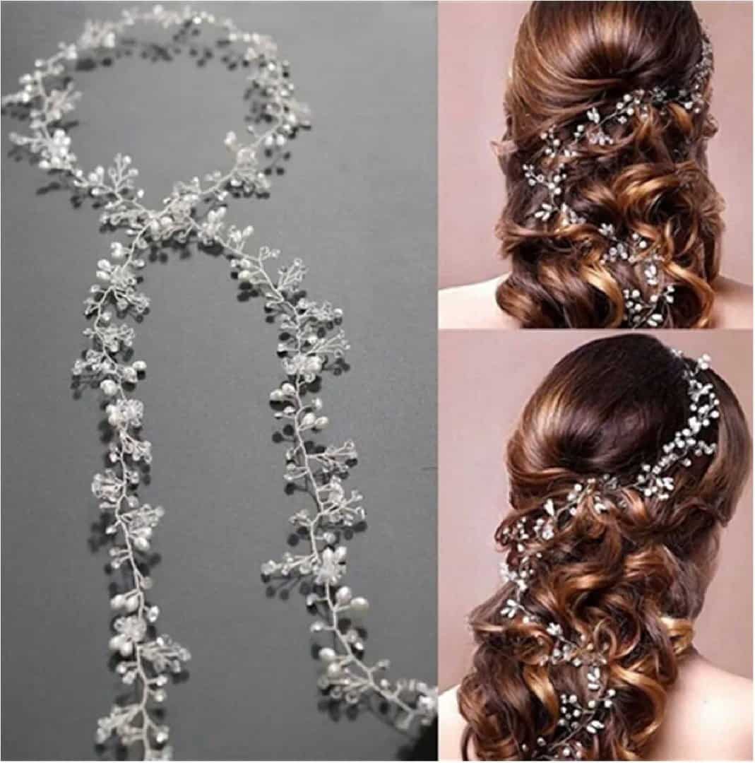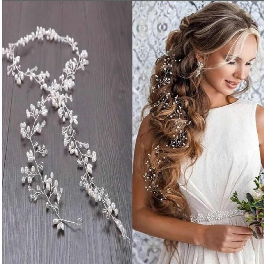 Νυφικό ” σύρμα ” με κρυσταλλάκια και πέρλες 100 cm ασημί χρώμα