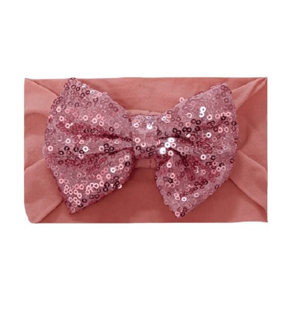 Παιδική- Βρεφική κορδέλα μαλλιών με μεγάλο φιόγκο 11 cm με πούλιες στρας 0-8χρονών – Dirty Peach