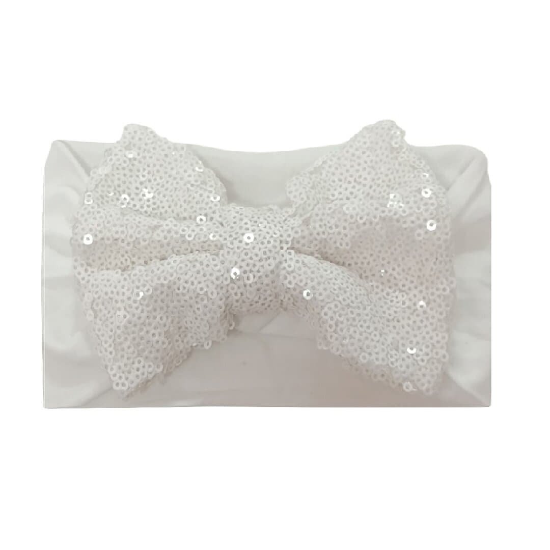 Παιδική- Βρεφική κορδέλα μαλλιών με μεγάλο φιόγκο 13 cm με πούλιες στρας 0-8χρονών – White