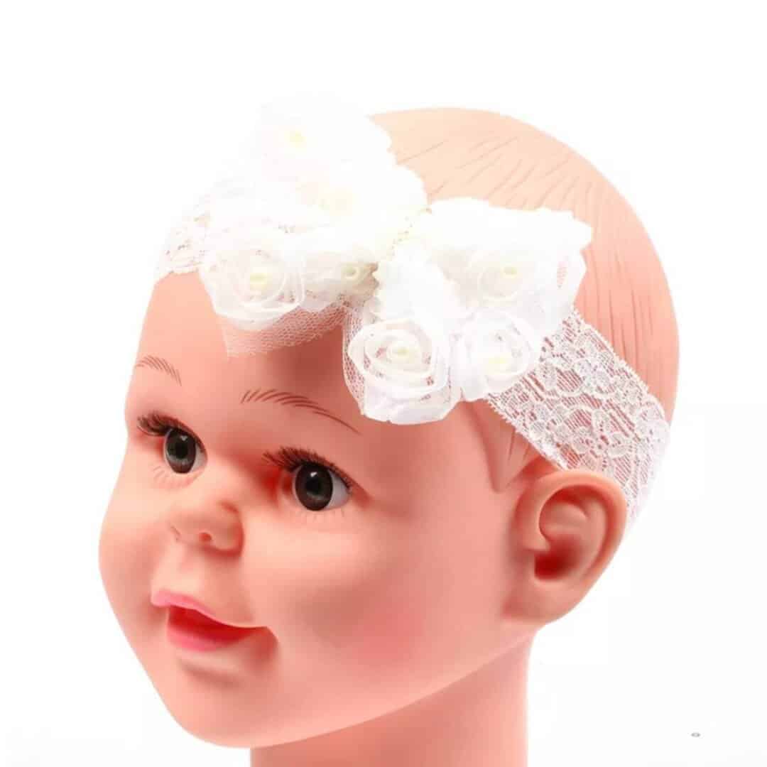 Παιδική- Βρεφική κορδέλα με Φιόγκο και περλίτσες για βάφτιση 0-2 χρονών- White