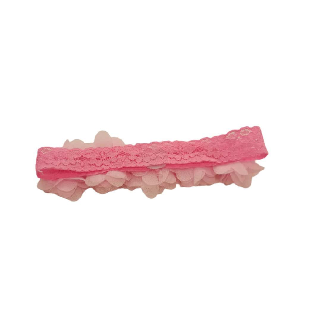 Παιδική- Βρεφική κορδέλα με λουλούδια και δαντέλα για βάφτιση και παρανυφάκια 0-5 χρονών Dark Pink
