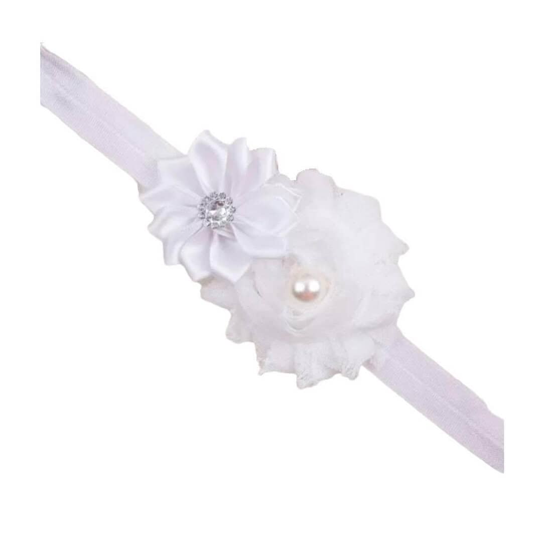 Παιδική- Βρεφική κορδέλα με λουλούδια για βάφτιση και παρανυφάκια 0-5 χρονών- White