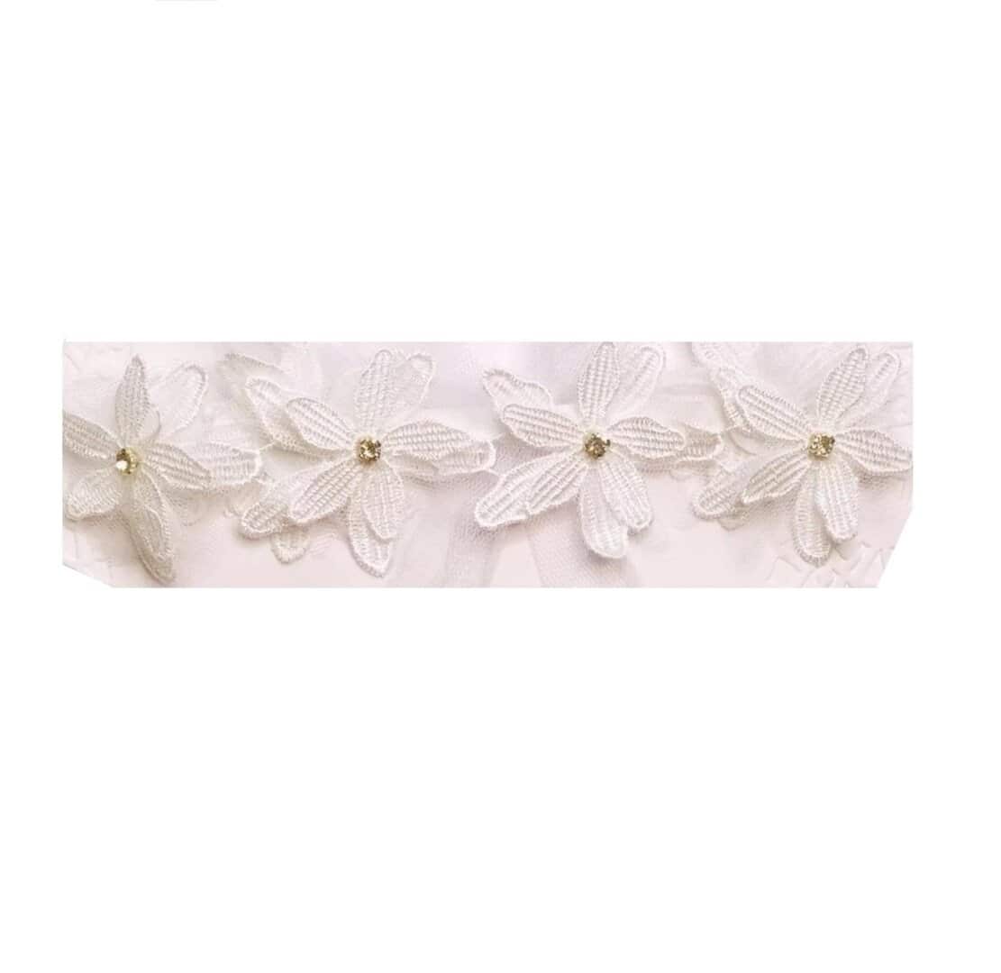 Παιδική- Βρεφική λευκή κορδέλα από δαντέλα με λουλούδια για βάφτιση και παρανυφάκια 0-2 χρονών