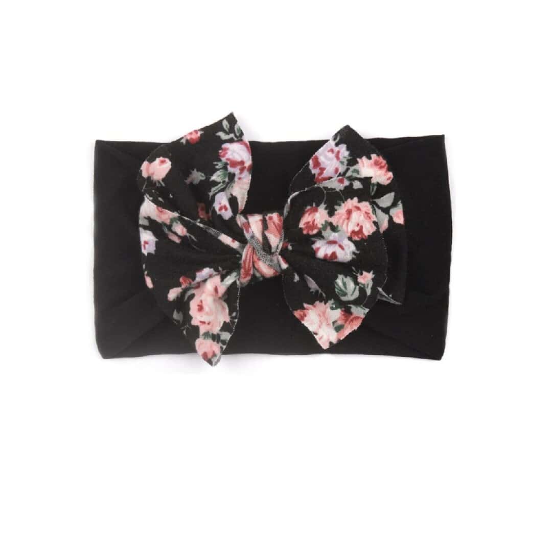 Παιδική- Βρεφική Μαλακή κορδέλα μαλλιών με φιόγκο 0-7χρονών – Flowers Black