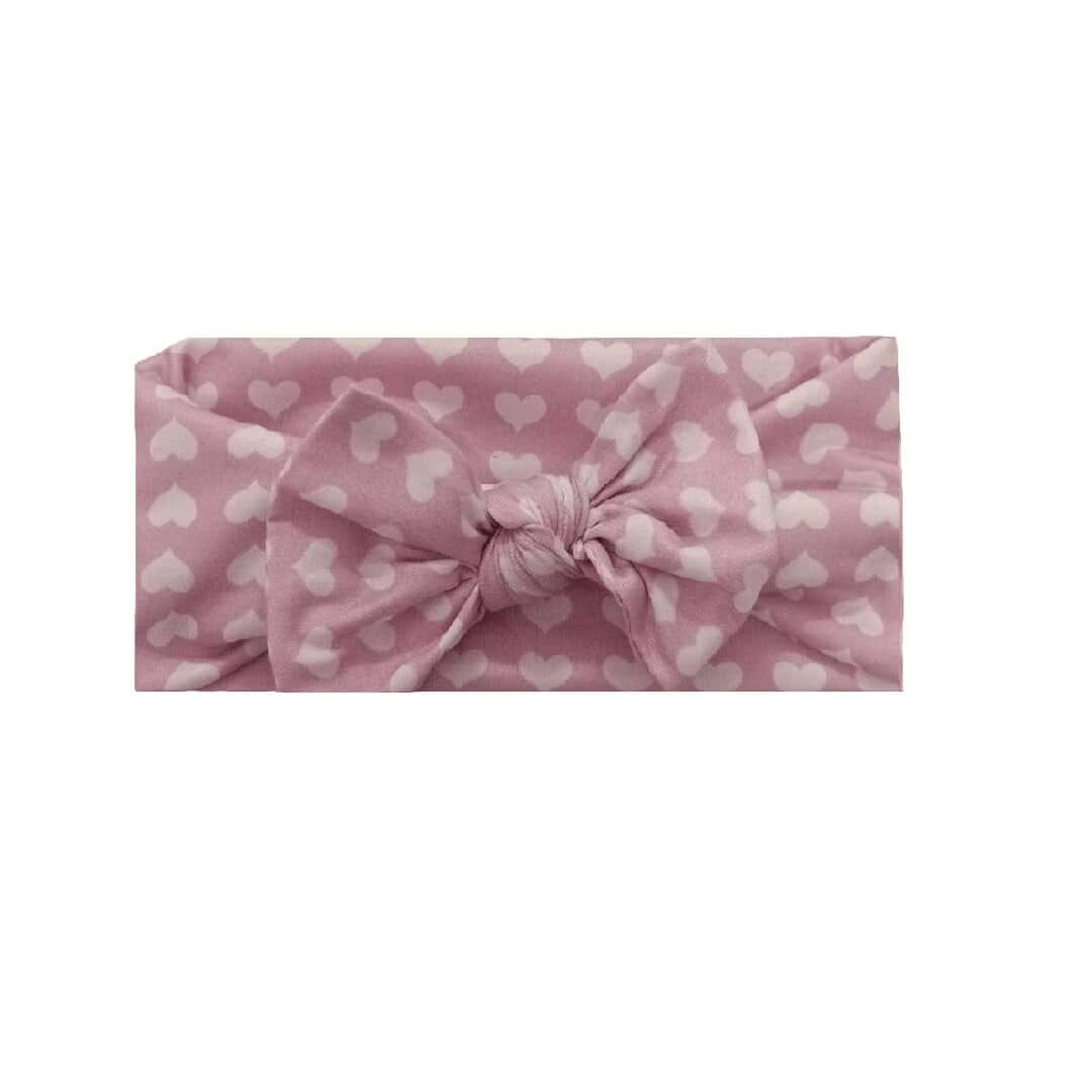 Παιδική- Βρεφική Μαλακή κορδέλα μαλλιών με φιόγκο 5 μηνών-5 χρονών – Hearts Dusty Purple