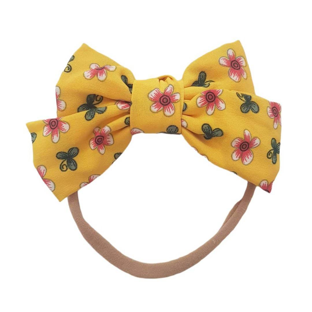 Παιδική- Βρεφική Μαλακή κορδέλα μαλλιών με μεγάλο φιόγκο 10cm Flowers Yellow 0-5 χρονών