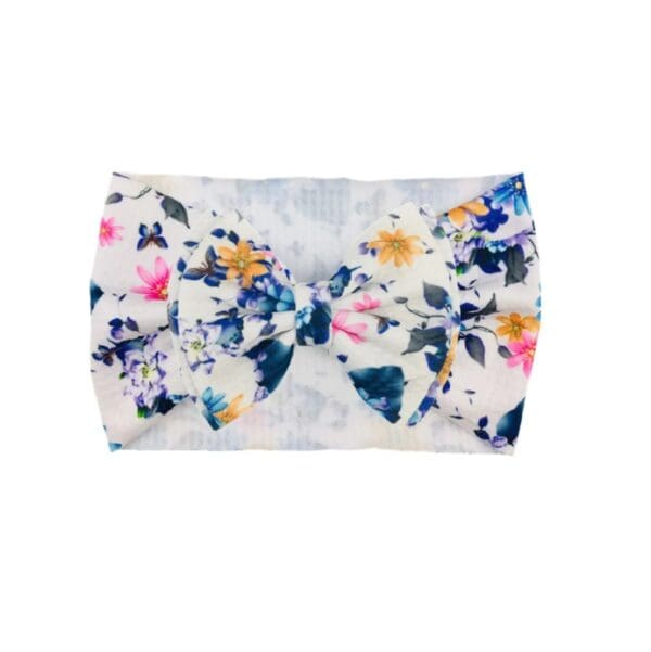 Παιδική- Βρεφική Μαλακή κορδέλα μαλλιών με μεγάλο φιόγκο 5” inches 5 μηνών-7χρονών waffle- White Butterflies
