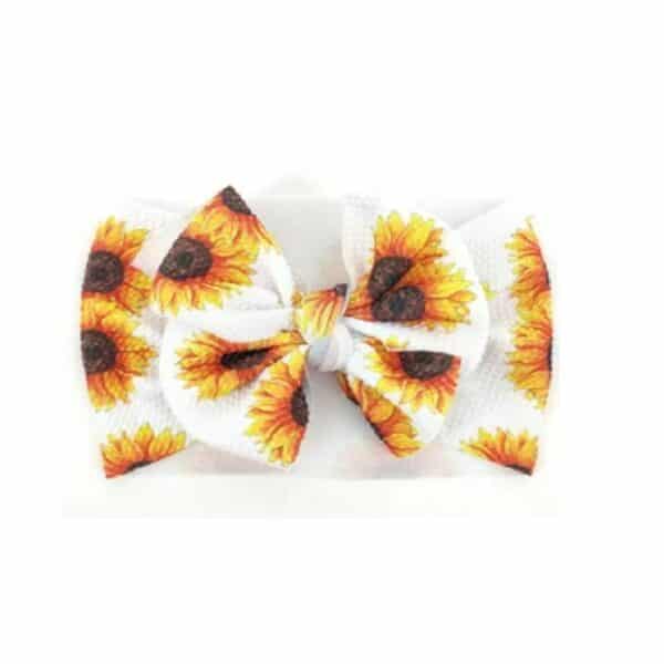 Παιδική- Βρεφική Μαλακή κορδέλα μαλλιών με μεγάλο φιόγκο 5,5” inches 5 μηνών-7χρονών waffle- Sunflower White