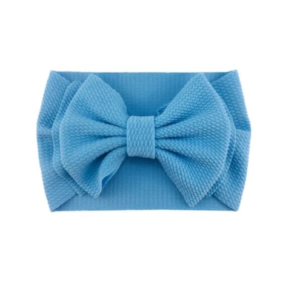 Παιδική- Βρεφική Μαλακή κορδέλα μαλλιών με μεγάλο φιόγκο 6” inches 5 μηνών-7χρονών waffle- Sky Blue