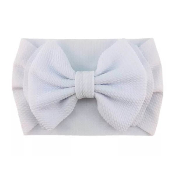 Παιδική- Βρεφική Μαλακή κορδέλα μαλλιών με μεγάλο φιόγκο 6” inches 5 μηνών-7χρονών waffle- White